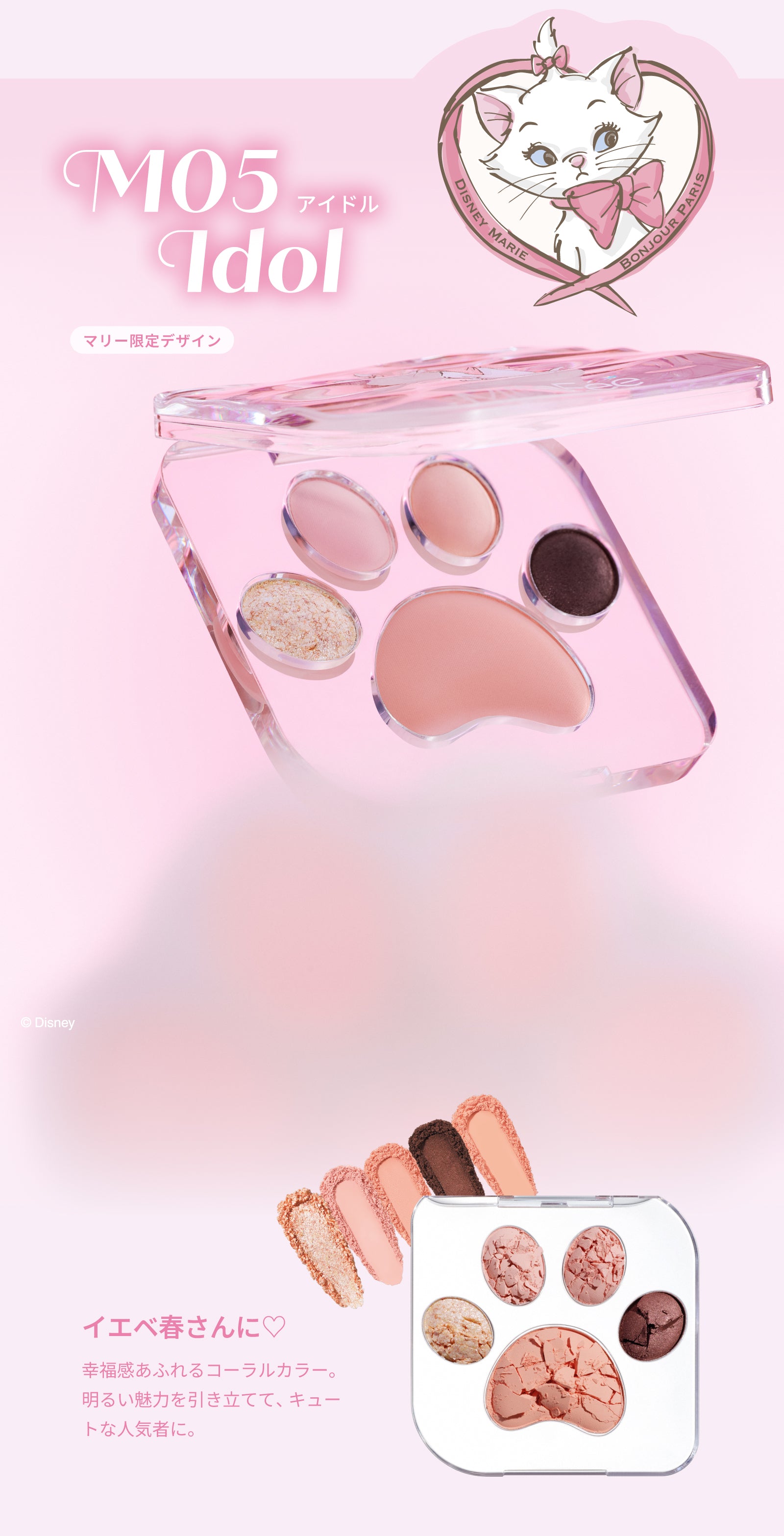 【M05 アイドル / ディズニー マリー】全成分:タルク、マイカ、合成フルオロフロゴパイト、ジメチコン、合成ワックス、シリカ、酸化チタン、カオリン、酸化鉄、ミリスチン酸Mg、ホウケイ酸(Ca/Al)、窒化ホウ素、パルミチン酸エチルヘキシル、ステアリン酸亜鉛、水酸化Al、パルミチン酸亜鉛、トリエトキシカプリリルシラン、酢酸トコフェロール、フェノキシエタノール、ポリイソブテン、黄4、ビスジグリセリルポリアシルアジペート-2、カプリリルグリコール、赤202、赤201、酸化スズ