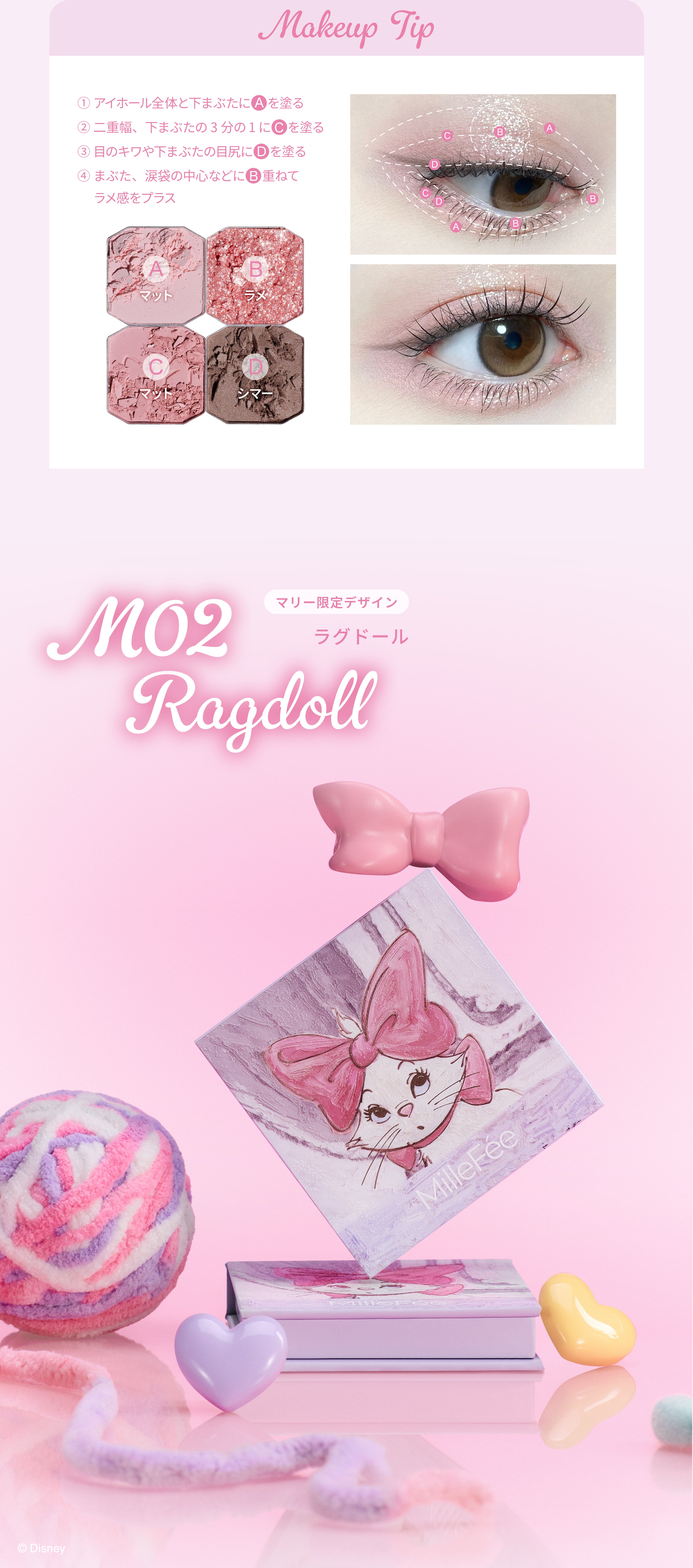 M02 ラグドール / ディズニー マリー全成分:マイカ、ホウケイ酸(Ca/Al)、ジメチコン、合成フルオロフロゴパイト、酸化チタン、酸化鉄、パルミチン酸エチルヘキシル、合成ワックス、ステアリン酸亜鉛、ポリメタクリル酸メチル、パルミチン酸亜鉛、ポリブテン、ビスジグリセリルポリアシルアジペート-2、フェノキシエタノール、マンガンバイオレット、酢酸トコフェロール、カプリリルグリコール、酸化スズ、シリカ、赤226、クエン酸