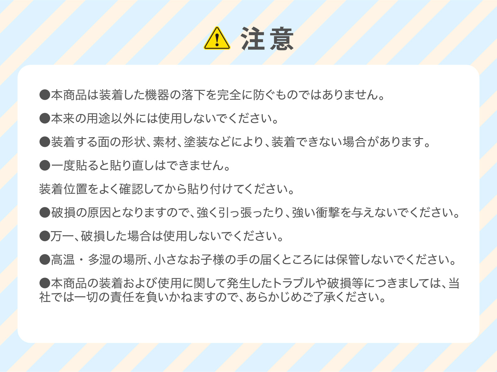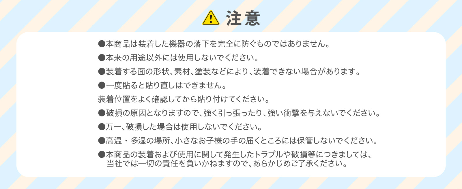 【使用上の注意】本商品は装着した機器の落下を完全に防ぐものではありません。本来の用途以外には使用しないでください。