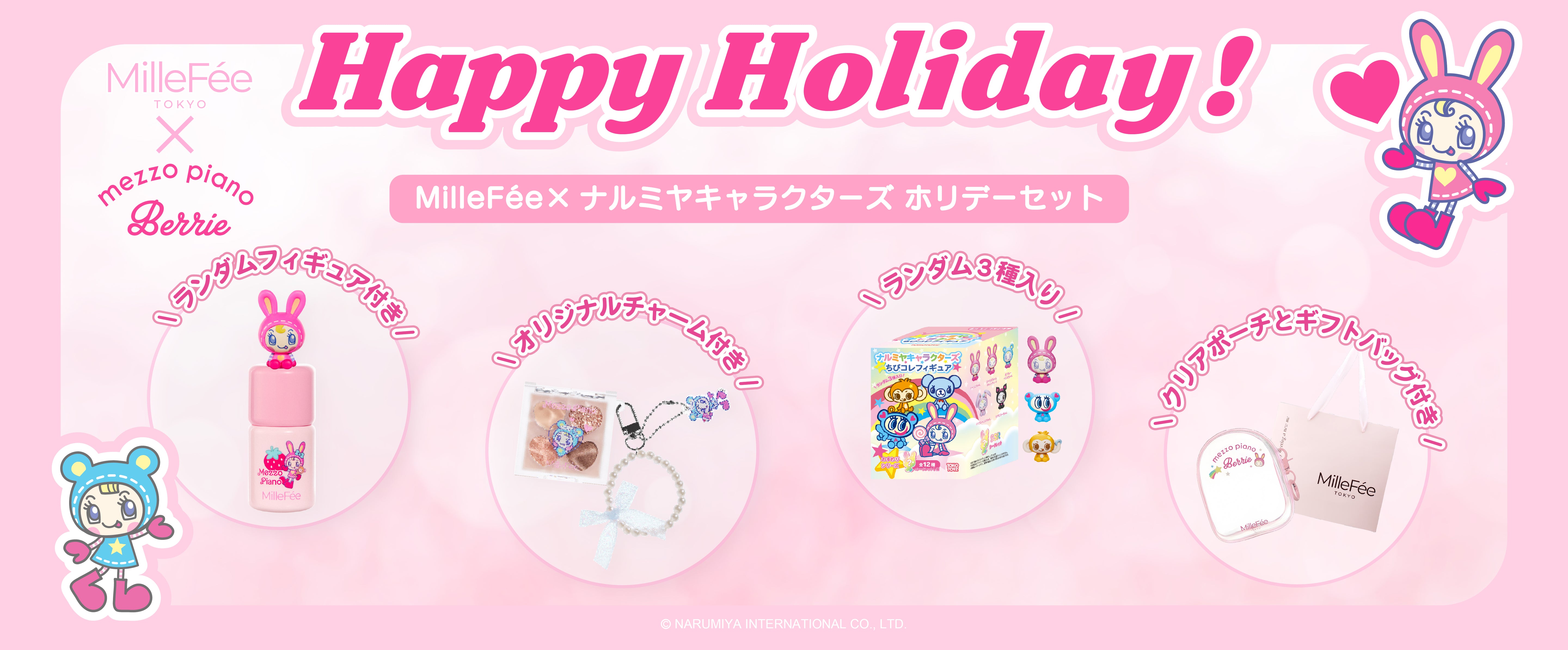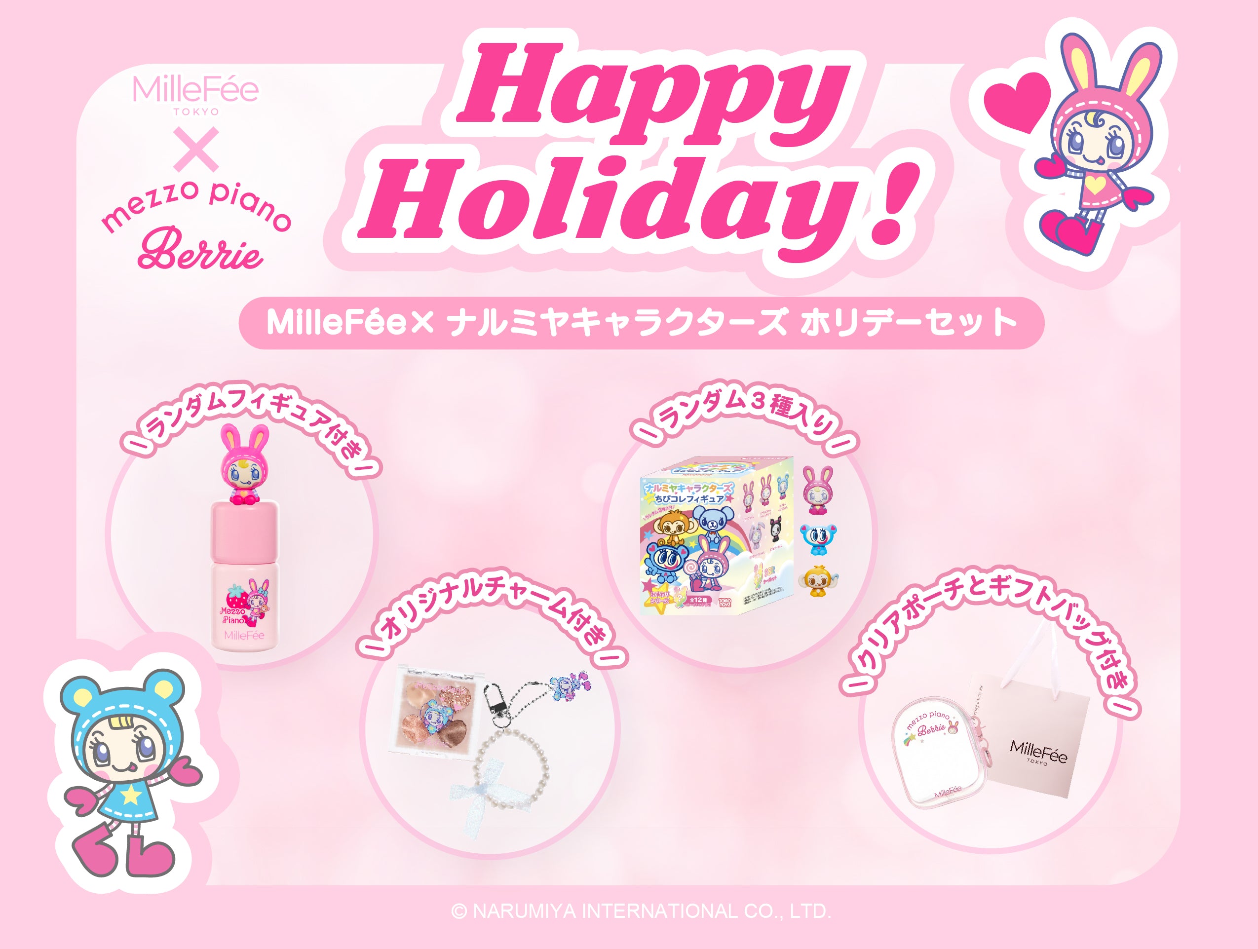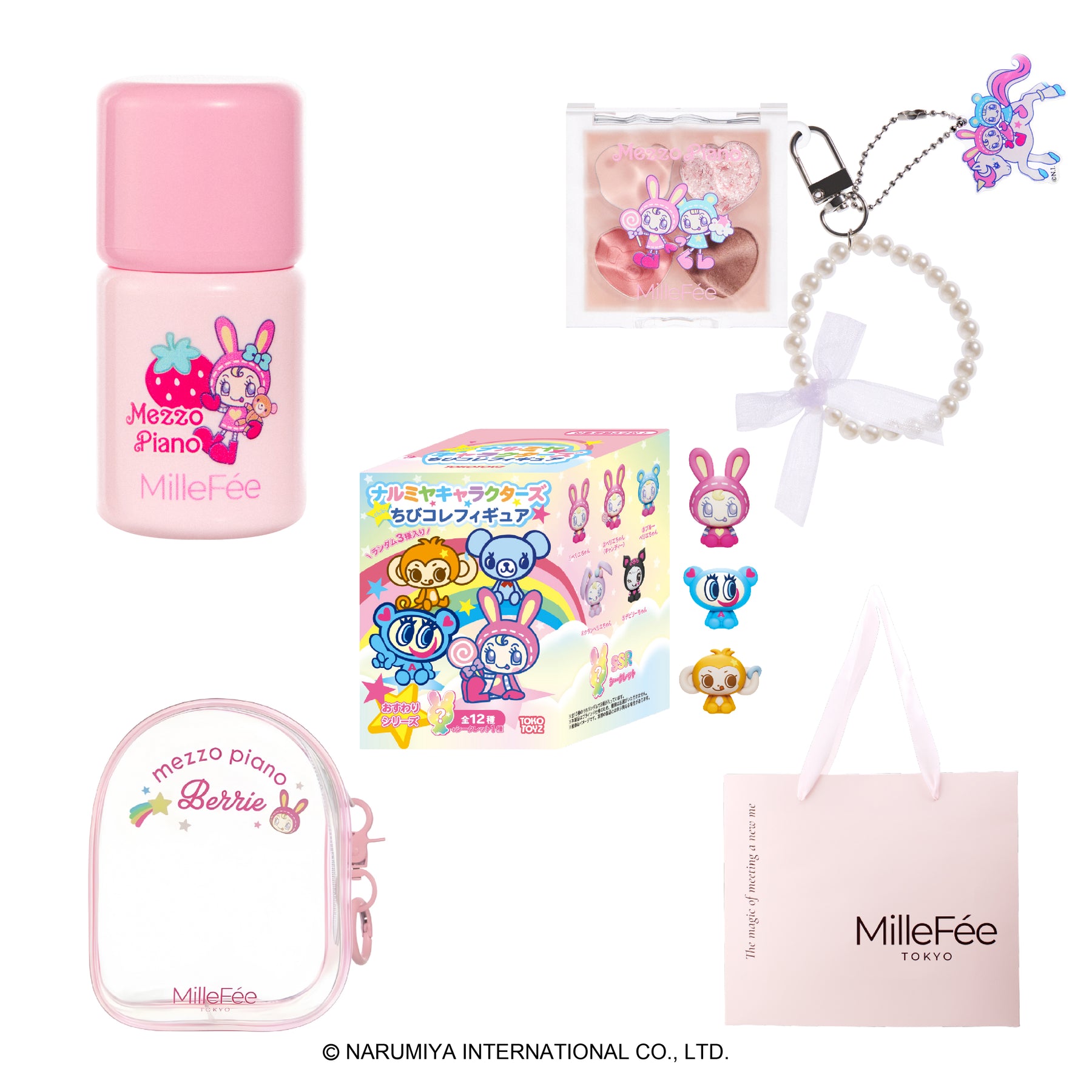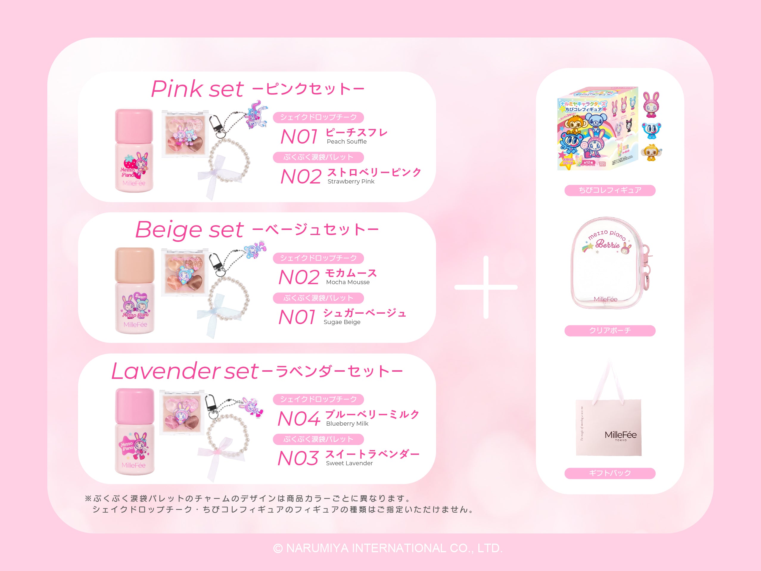 【ピンクセット】シェイクドロップチーク N01ピーチスフレ/ぷくぷく涙袋パレット N02ストロベリーピンク/ちびコレフィギュア(内容量:ランダム 3個)/クリアポーチ/ギフトバッグ