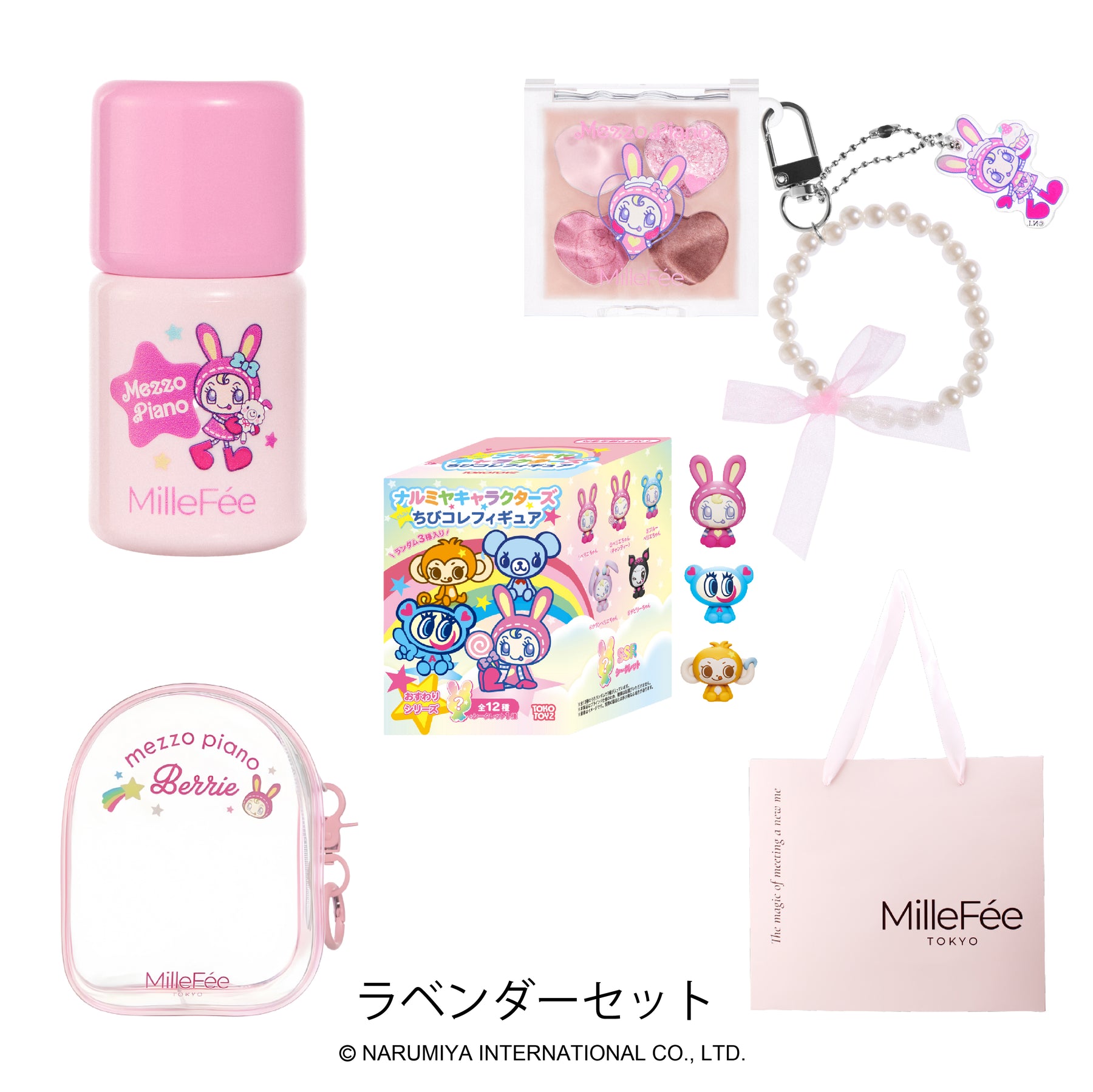 【ラベンダーセット】シェイクドロップチーク N04ブルーベリーミルク/ぷくぷく涙袋パレット N03スイートラベンダー/ちびコレフィギュア(内容量:ランダム 3個)/クリアポーチ/ギフトバッグ