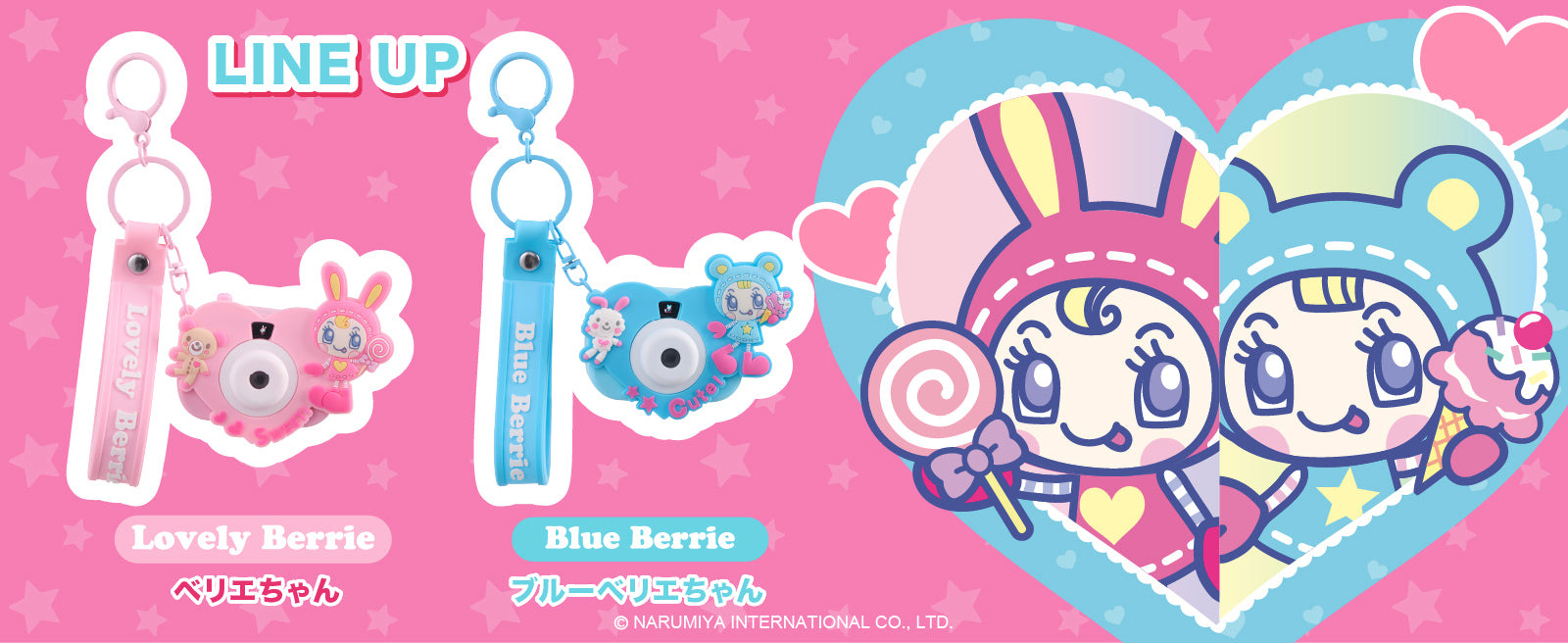【ブルーベリエちゃん】内容量:1個 | 材質:PVC・ABS・亜鉛合金 | ボタン電池:LR41 (AG3) ×3 | 本体サイズ (WxDxH):76 x 26 x 62mm
