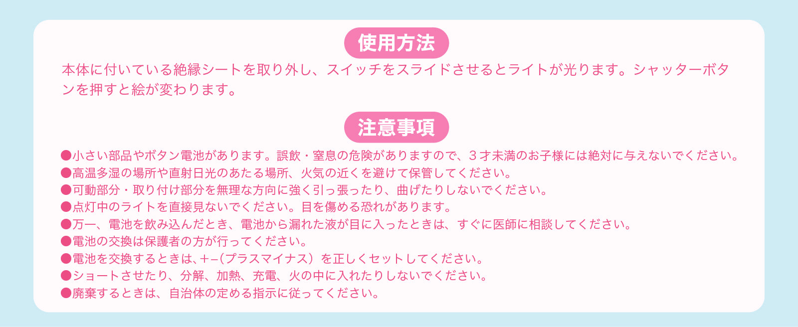 【使用上の注意】窒息などの危険がありますので、包装材や本品を口の中には絶対に入れないでください。本来の用途以外には使用しないでください。