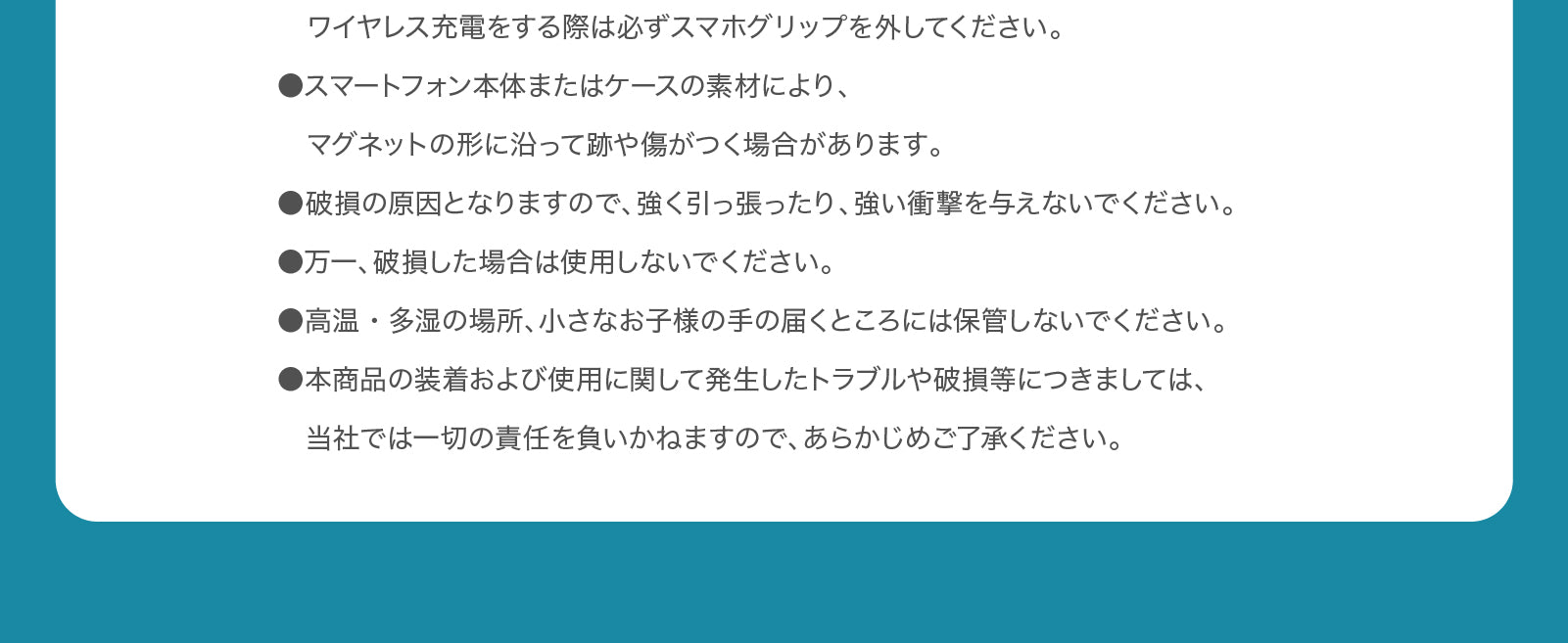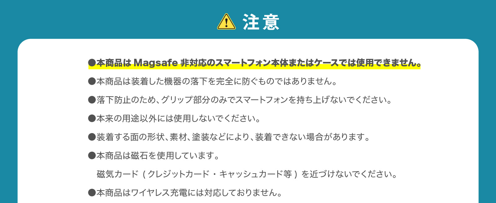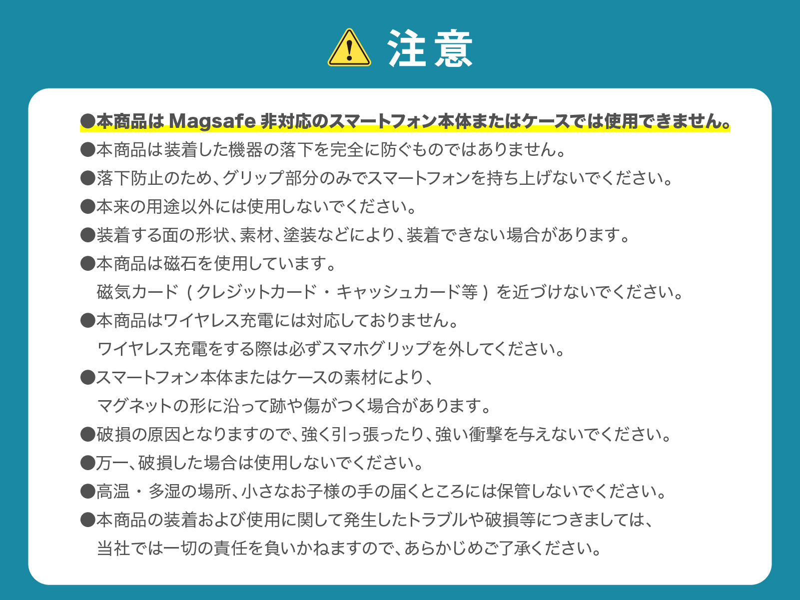 【使用上の注意】本商品は装着した機器の落下を完全に防ぐものではありません。本来の用途以外には使用しないでください。
