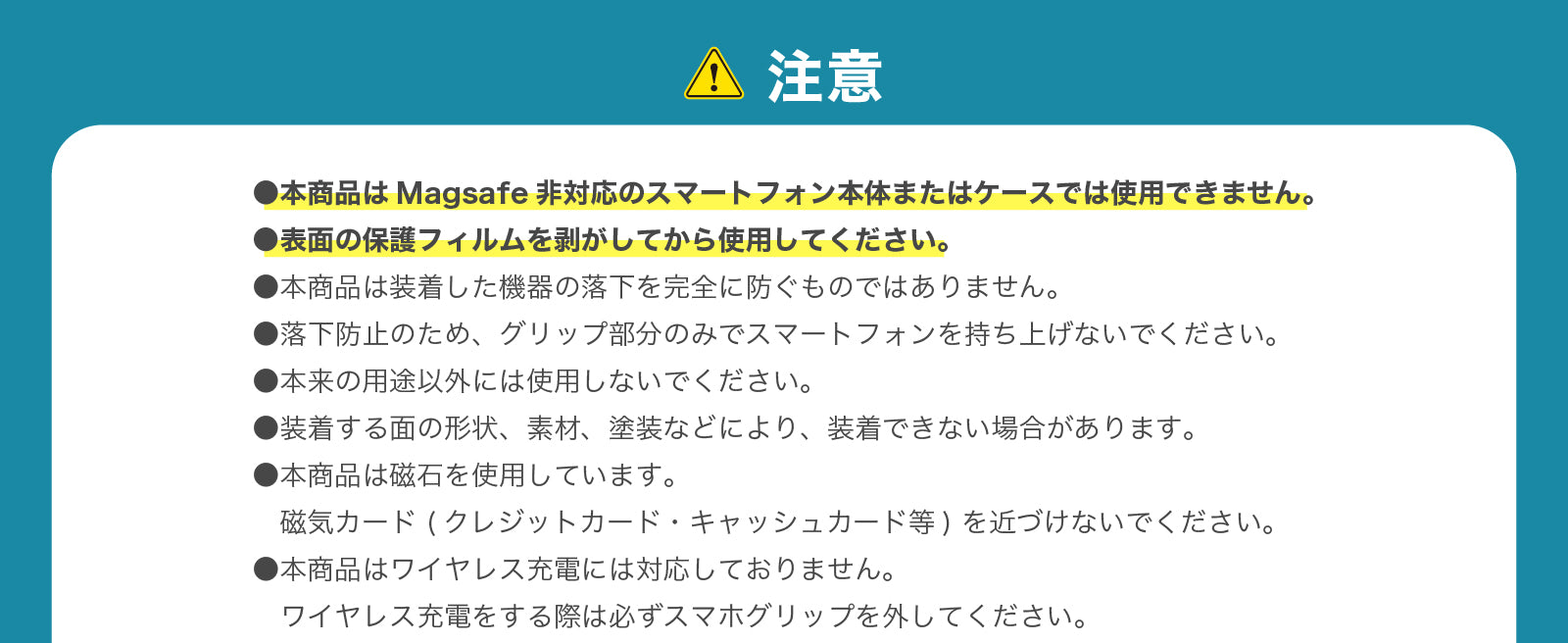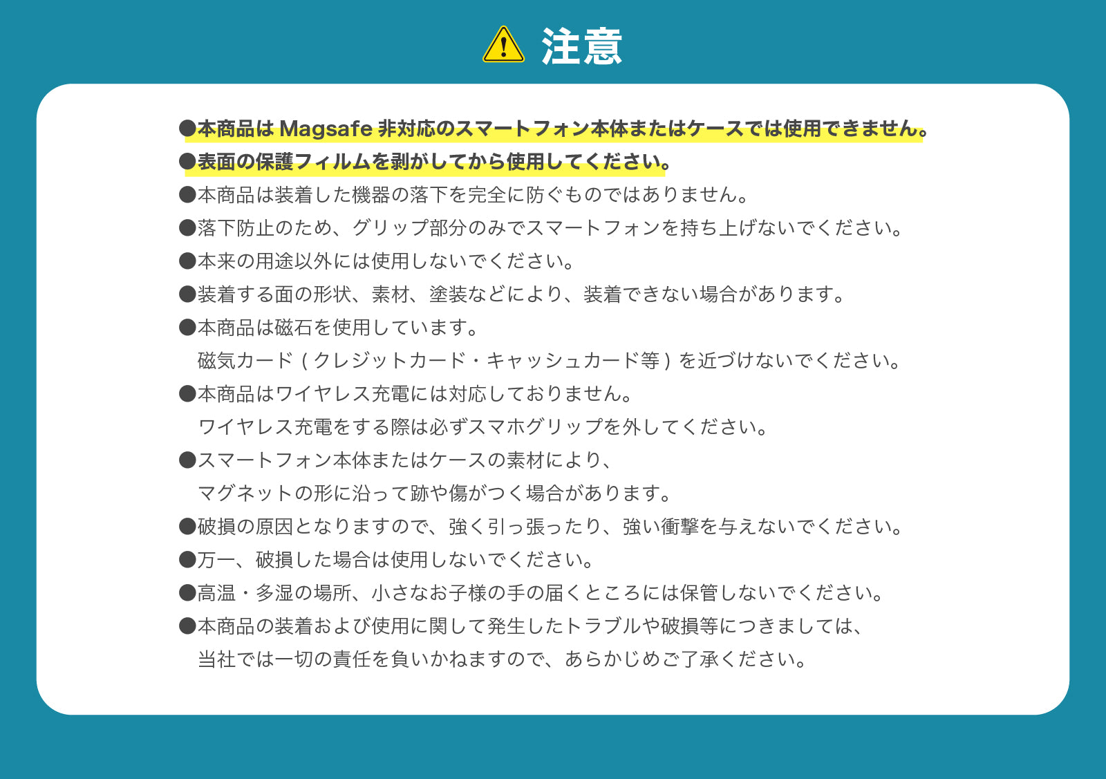 【使用上の注意】本商品は装着した機器の落下を完全に防ぐものではありません。本来の用途以外には使用しないでください。